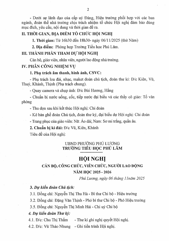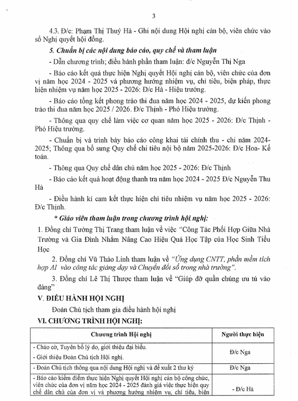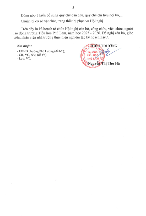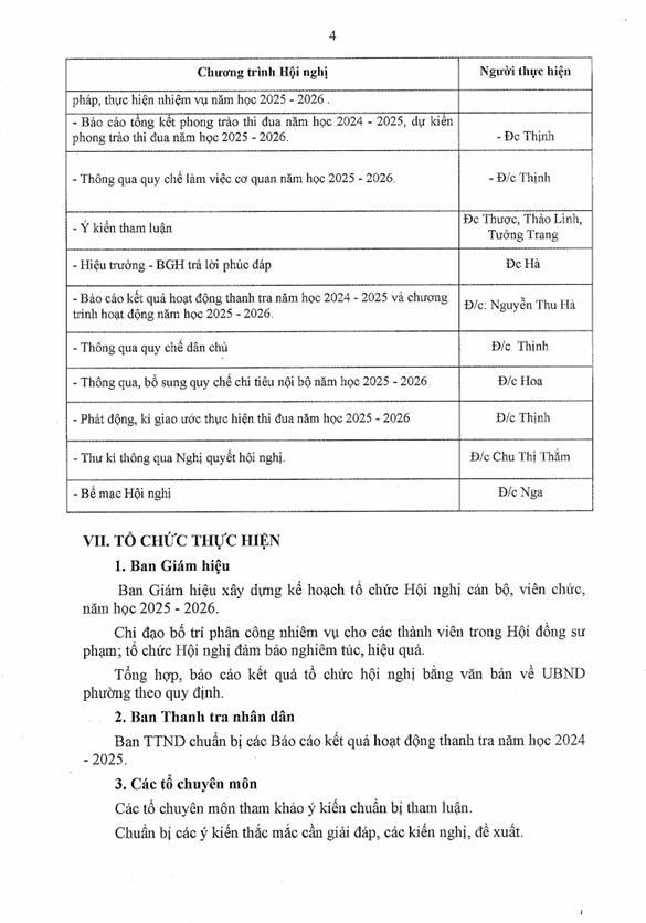 KẾ HOẠCH TỔ CHỨC HỘI NGHỊ CÁN BỘ, CÔNG CHỨC, NGƯỜI LAO ĐỘNG NĂM HỌC 2025 - 2026
