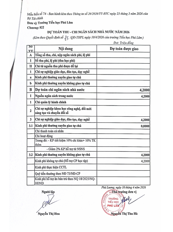 QĐ VỀ VIỆC CÔNG KHAI CẤP DỰ TOÁN HỖ TRỢ CHI PHÍ HỌC TẬP KỲ I NĂM HỌC 2025 - 2026 CHO HỌC SINH THEO QUYẾT ĐỊNH SỐ 342/QĐ-UBND NGÀY 08/04/2026 CỦA UBND PHƯỜNG PHÚ LƯƠNG