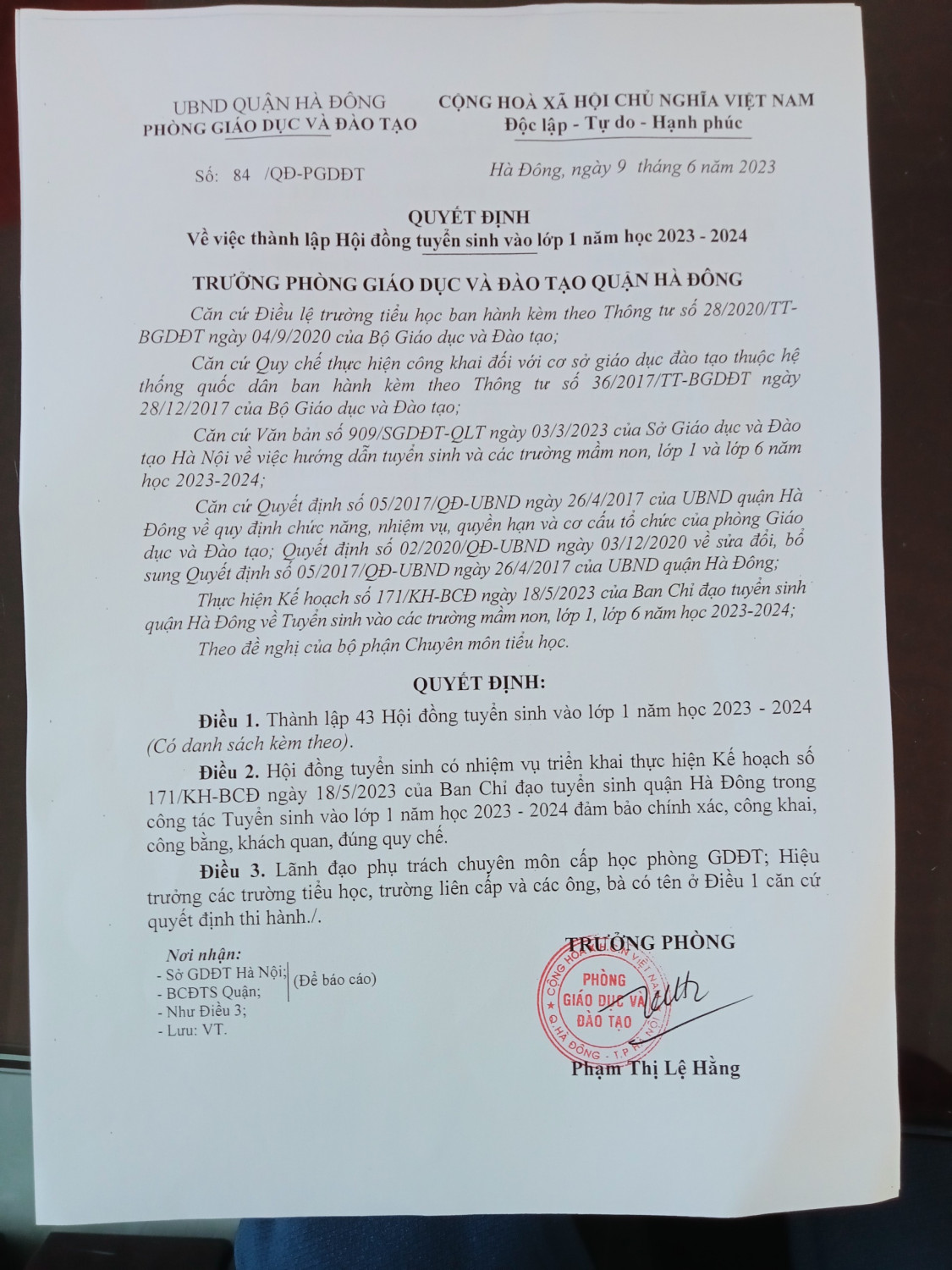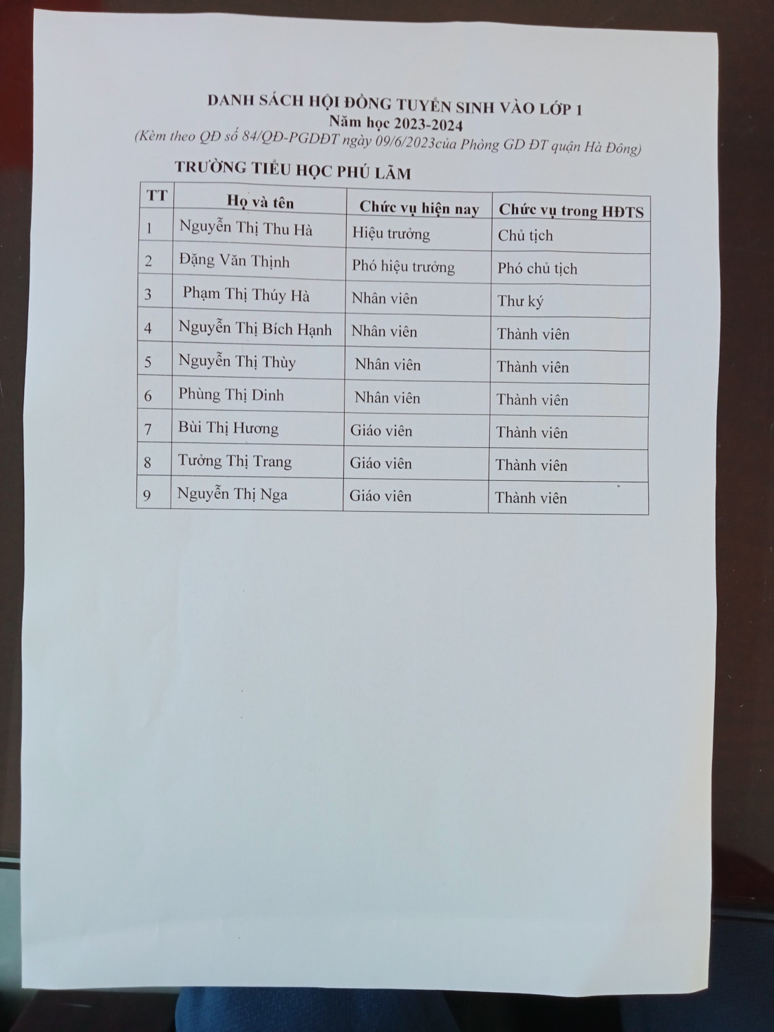 Thực hiện kế hoạch số 171/KH-BCĐ ngày 18/05/2023 của UBND quận Hà Đông về việc thực hiện kế hoạch tuyển sinh vào các trường mầm non, lớp 1, lớp 6 năm học 2023-2024. Ban giám hiệu trường Tiểu học Phú Lãm xin thông báo tuyển sinh lớp 1 năm học 2023-2024.( file văn bản đính kèm).